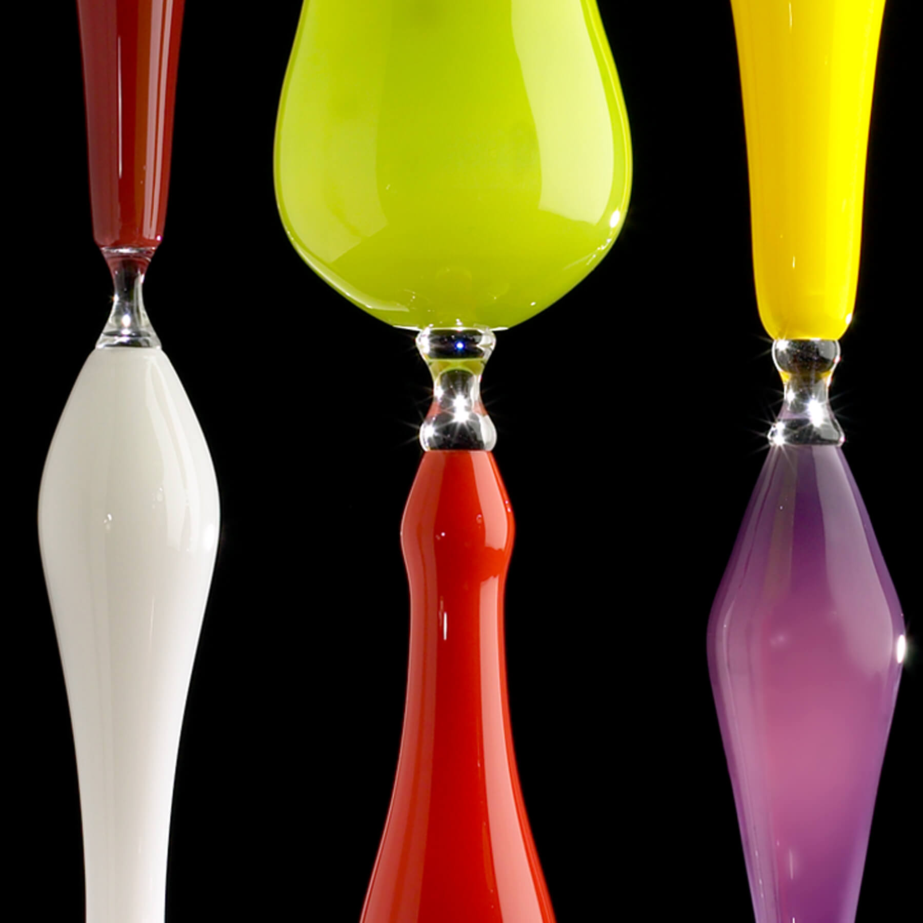 These are basically over scaled, simplified goblet forms with a derivative on the Totem design connected with over scaled avolio forms. Like the Venetians, they are very elegant and modern with a hint towards traditional Italian glass forms. These pieces have been well received with the ‘Symphony’ challis being accepted into The White House Collection.