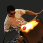 I continue to feel the heat as I reheat the vessel I’m creating. It feels so familiar and I know why. This time as I bring the lip of the vessel to a temperature hot enough to work the top of the form, I pull it out of the glory hole and hold it down while spinning. The spin torques the form as I balance the pipe from its fulcrum point. It develops into a well scalloped vase with intricate levels of pattern and detail through the color and optics. This time it’s not a dream, for real!